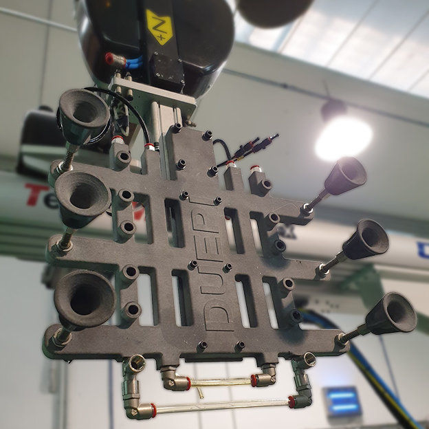 Tramite stampa 3d realizziamo internamente mani e dita di presa leggeri, versatili, funzionali con canali integrati per l’aria.